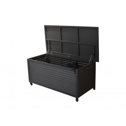 Cassapanca in alluminio con 2 ruote per facilitare gli spostamenti.