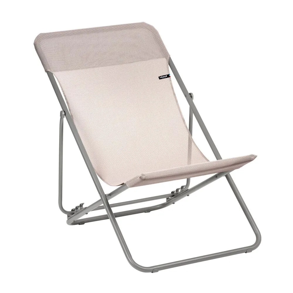 Struttura: tubo d’acciaio ALE (alto limite elastico) Ø22 mm. Vernice 100% poliestere, elevata resistenza ai raggi UV. Priva di traverse nella parte anteriore della seduta per un comfort maggiore.Tela: Batyline® ISO. Removibile e sostituibile.