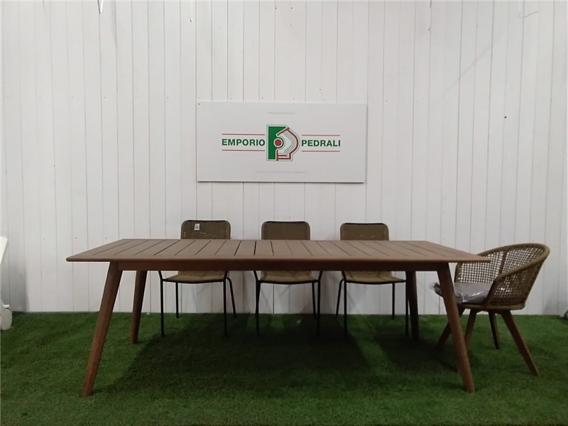 Tavolo Rio allungabile. Piano DurelTOP in polipropilene trattato anti-UV, colorato in massa. Gambe in alluminio verniciato. Finitura opaca. Dotato di piedini regolabili. 140 – 210 x 100 x 76h cm. Resina riciclabile.