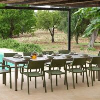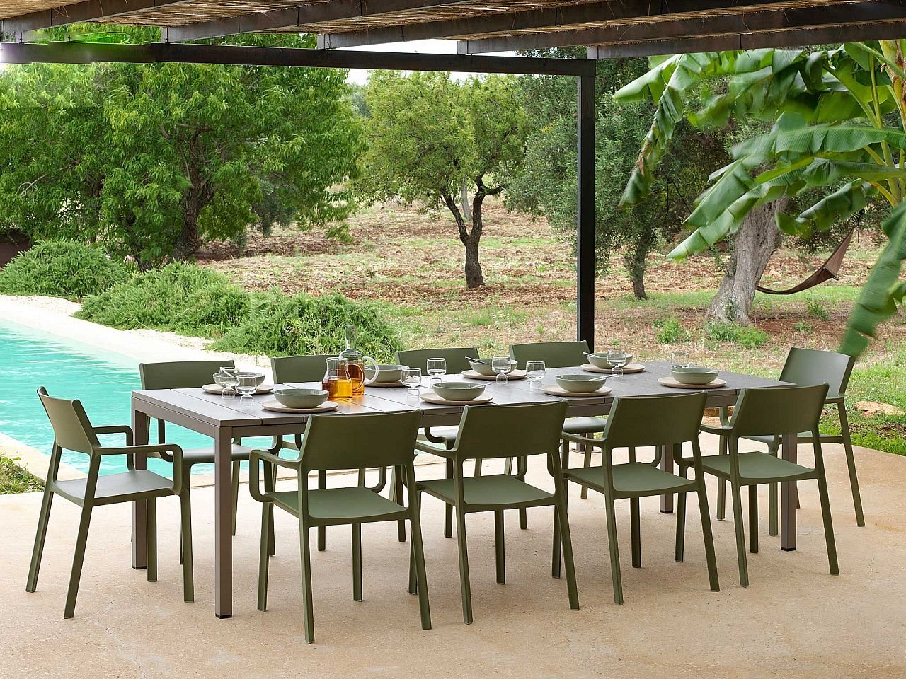 Set tavolo giardino Rio 140/210 in versione alluminio con 6 poltrone Trill di Nardi.