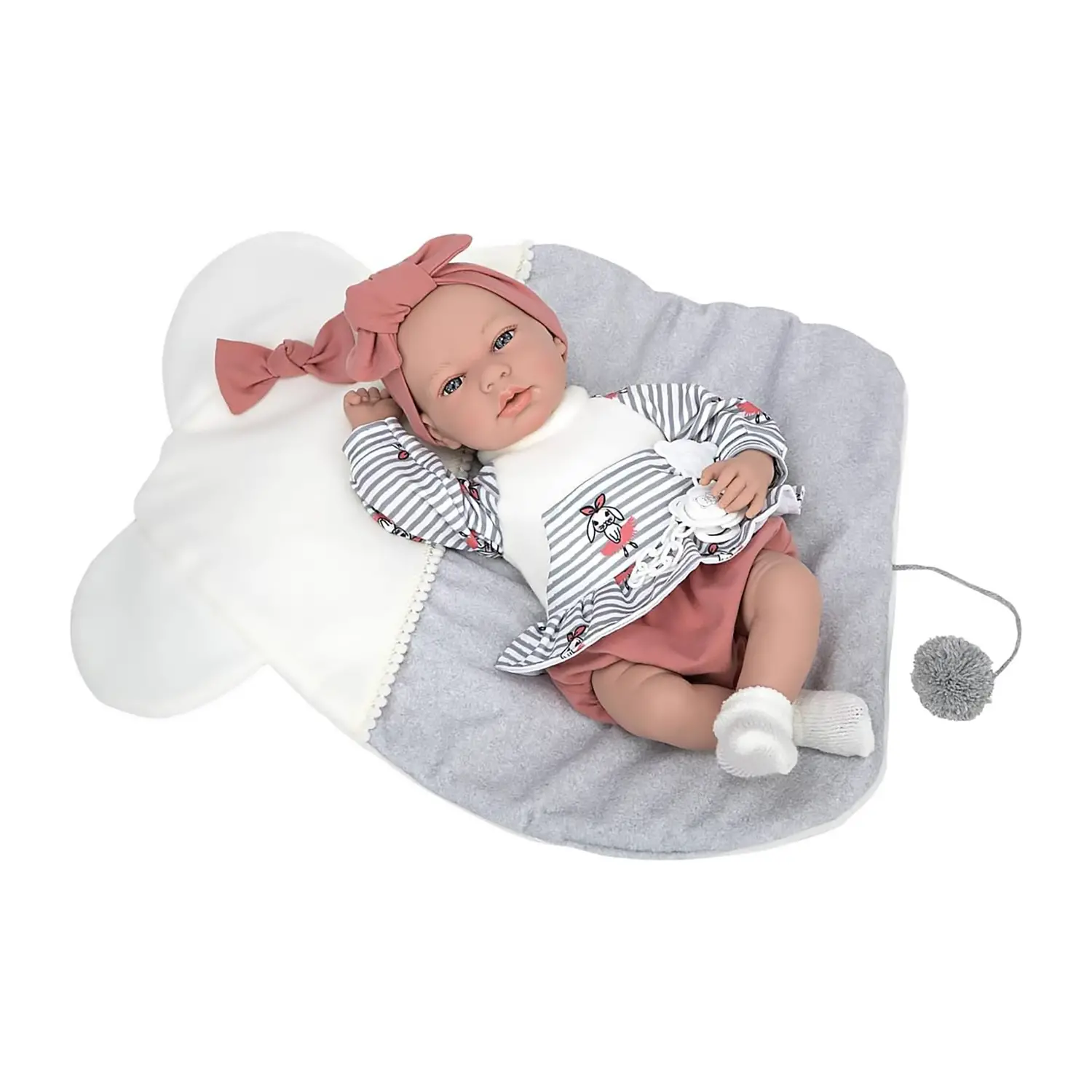 La bambola Arias Bebé 40 cm Abito Righe 60688 è una bellissima bambola elegante di 40 cm di altezza, chiamata Andie, vestita con un abito a righe rosa e bianco. Questa bambola presenta dettagli finemente rifiniti e dipinti, che ne rendono l’aspetto molto realistico. Potrai notare la cura dei particolari come il colore della pelle, il rossore delle guance e delle mani, che aggiungono un tocco di autenticità.