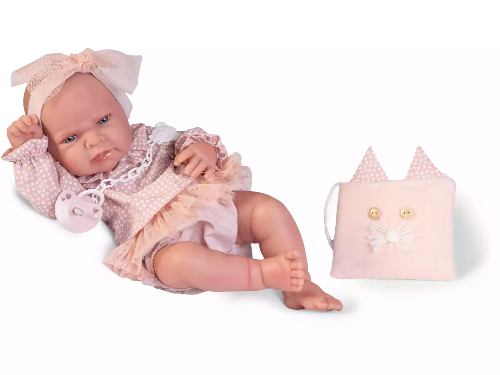 Metti le mani su questa bellissima bambola neonato dal disegno realistico, una Bebè con il corpo intero in morbido vinile e un alto livello di dettagli che farà la gioia dei più piccoli. Si tratta di una bambola unica nel suo genere, poiché Lea è dotata di una simpatica borsa a forma di gattino che si abbina al suo look e di un pratico succhietto per aiutarla a rilassarsi.