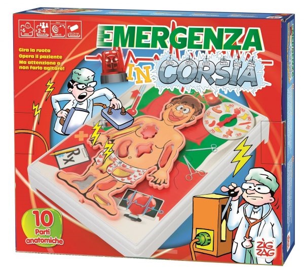 Emergenza in corsia è un divertente gioco di società con pinza elettrica per rimuovere le parti del corpo doloranti senza sfiorare i bordi metallici.