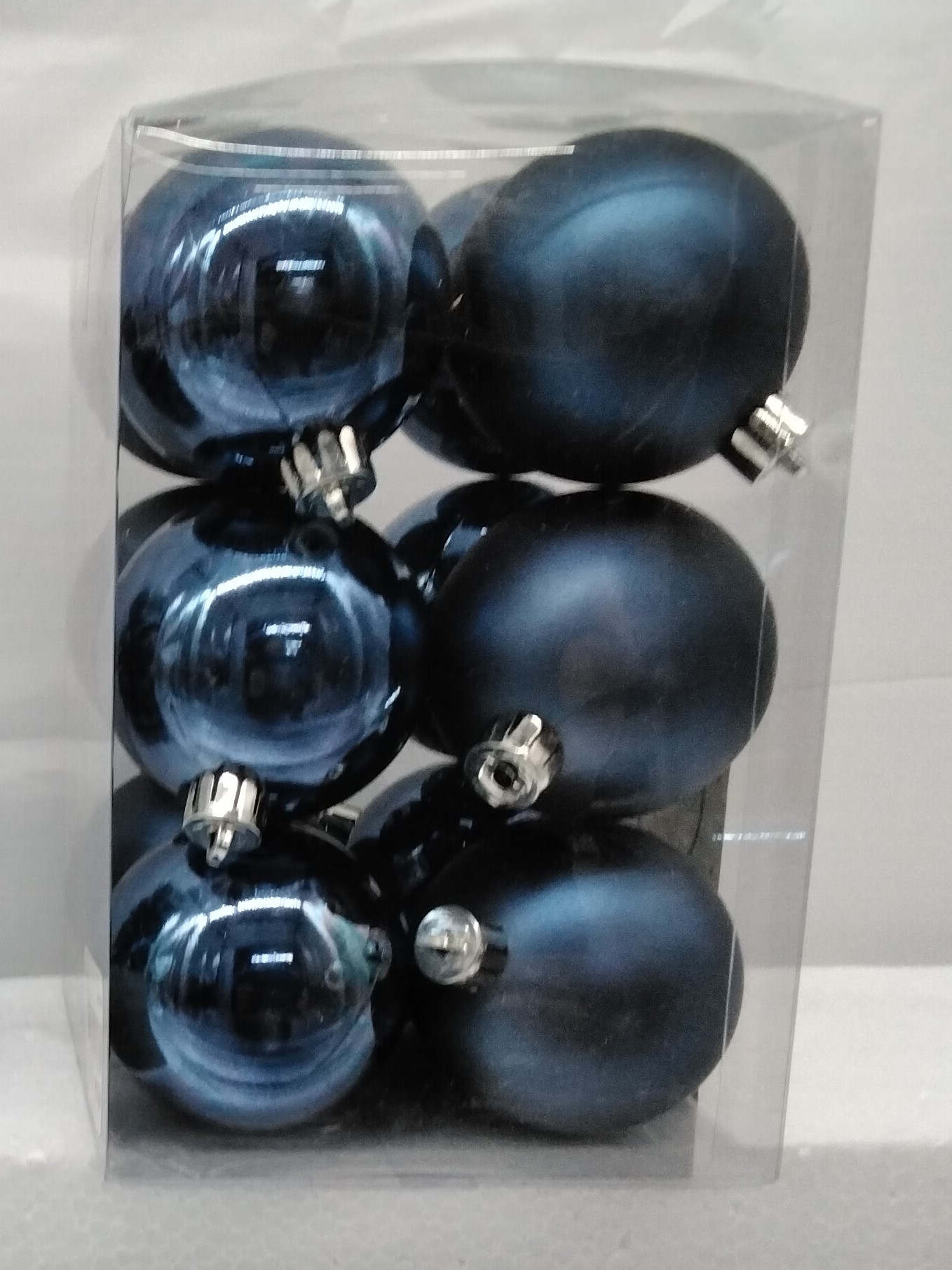 Set 12 palline blu in plastica 6cm di diametro.