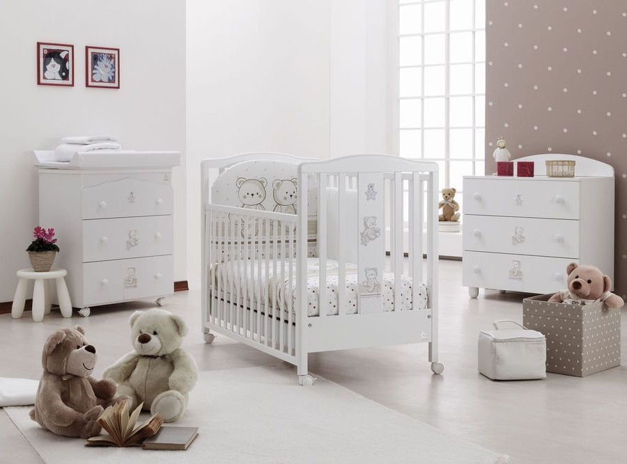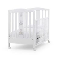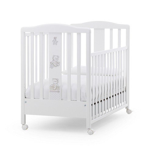 Il lettino Amici Italbaby ha la rete ortopedica interamente realizzata a doghe di legno con due posizioni, ruote piroettanti con freno e bordo salvamorso.